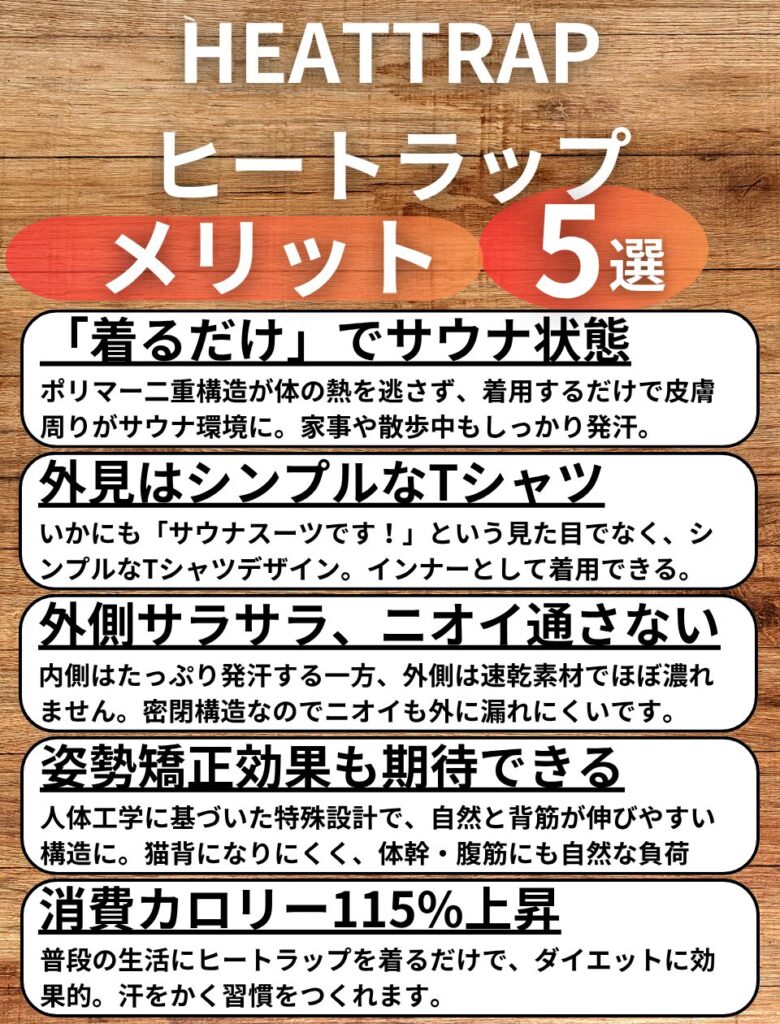 ヒートラップは「着るだけで発汗量が144%増加する」という、シンプルだけど強力なアイテムです。